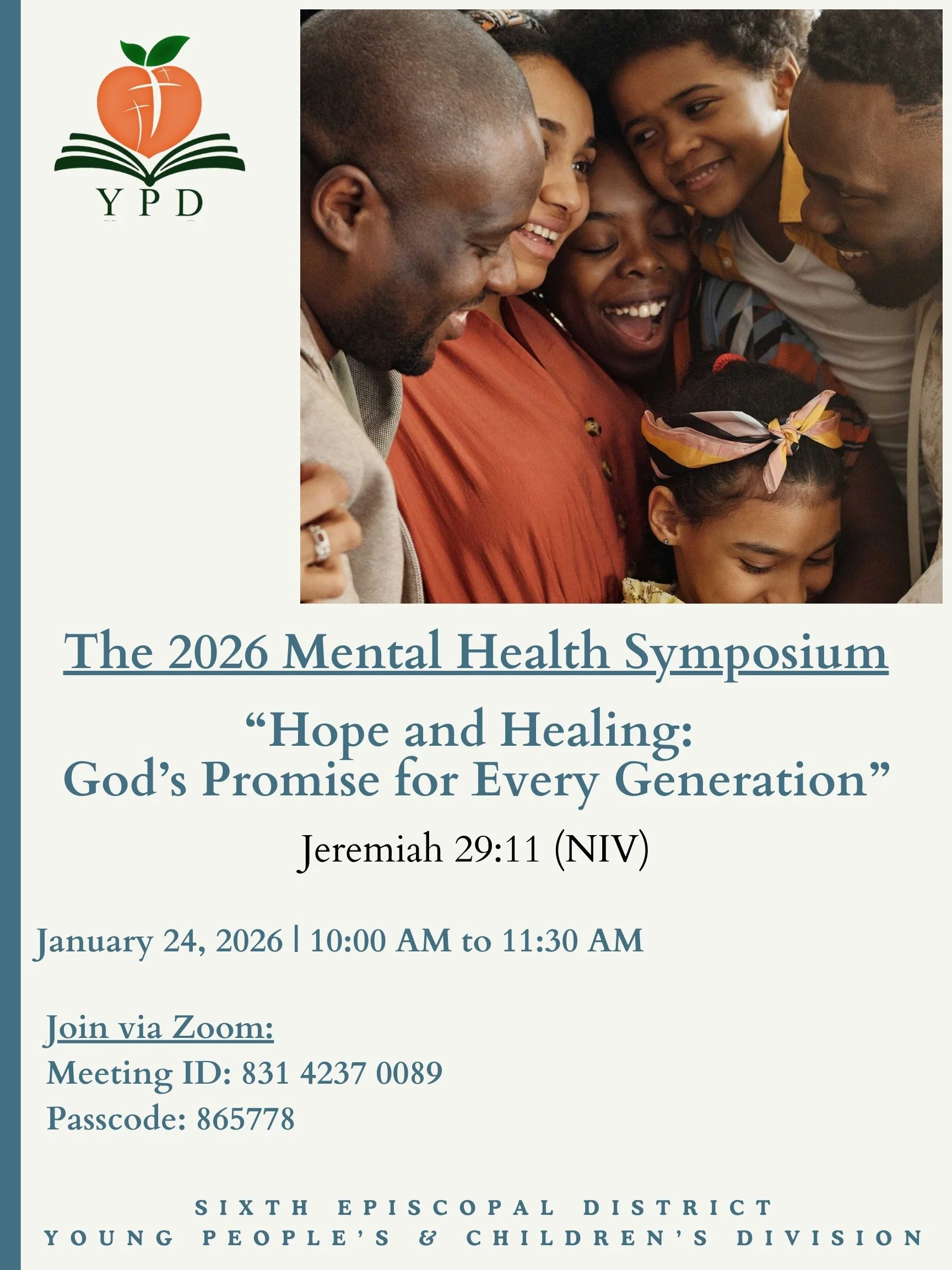 Join us for the 2026 Mental Health Symposium hosted by the Sixth Episcopal District Young People’s & Children’s Division.