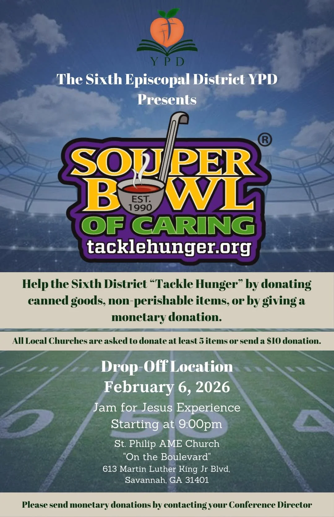 Join us in making a difference this Founder’s Day in Savannah, GA! Bring 2-3 canned goods to support Second Harvest or donate monetarily via CashApp ($YPD6th) with ‘Souper Bowl of Caring’ in the memo line. Can’t attend? Contact your conference director for details. Let’s tackle hunger together!